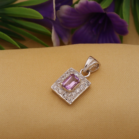 925 Sterling Silver Amethyst Square Pendant
