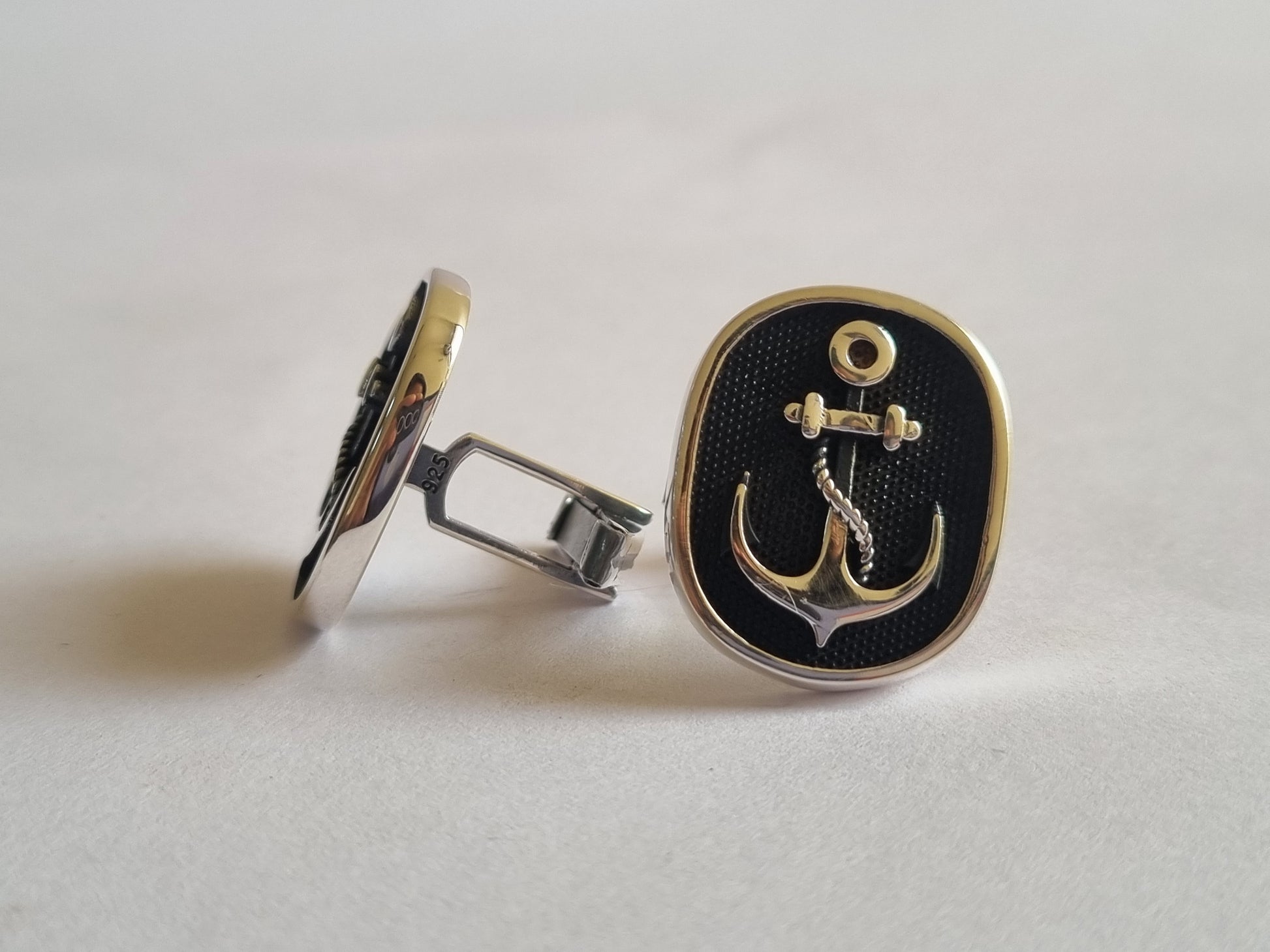 925 Sterling Silver Black Anchor Signet Cufflink for men