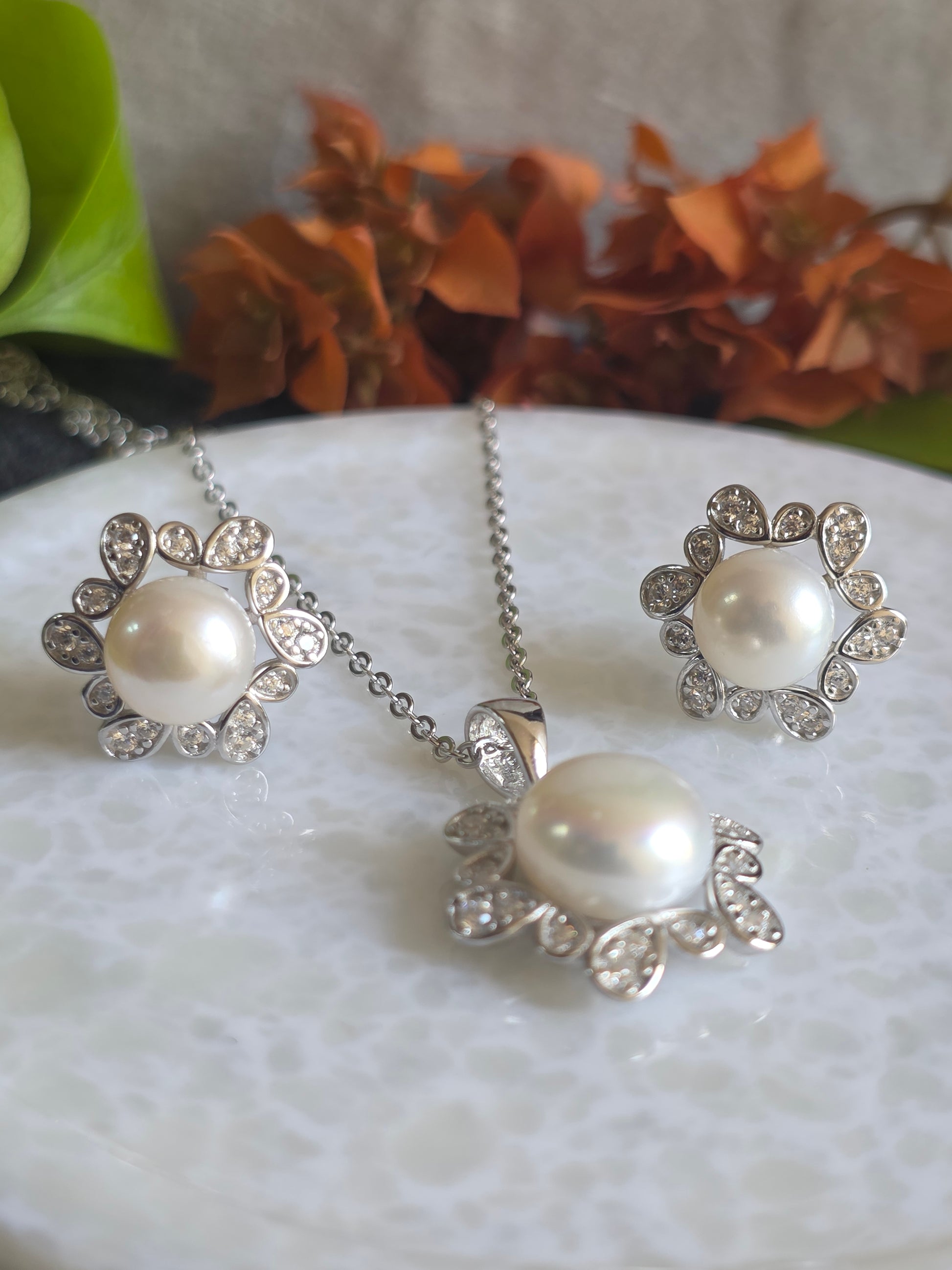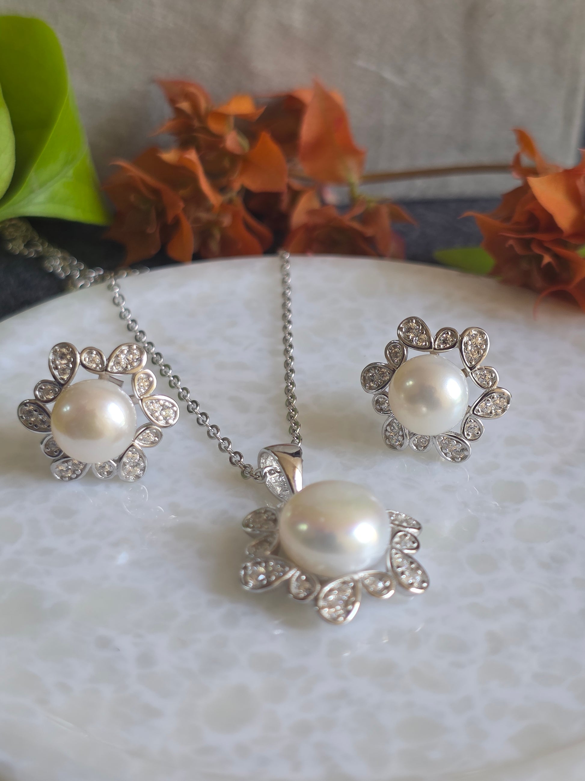 Preciously Mine 925 Sterling Silver CZ Pearl Flower Jewelry Set